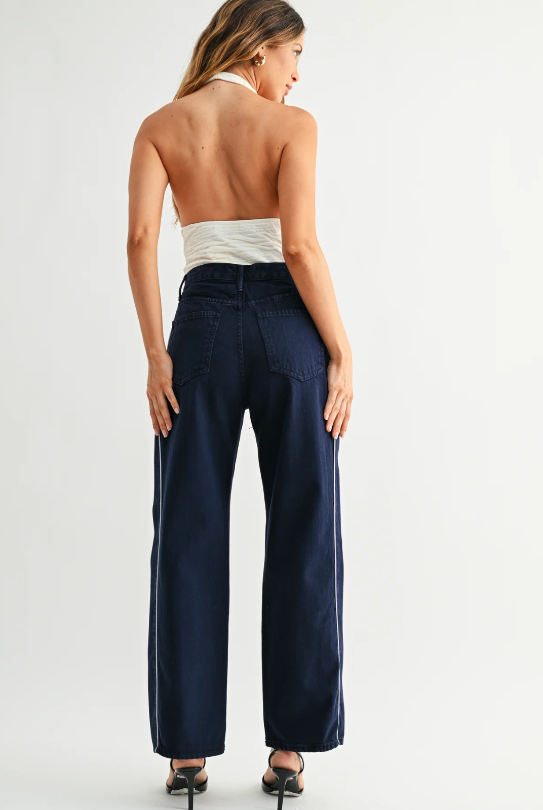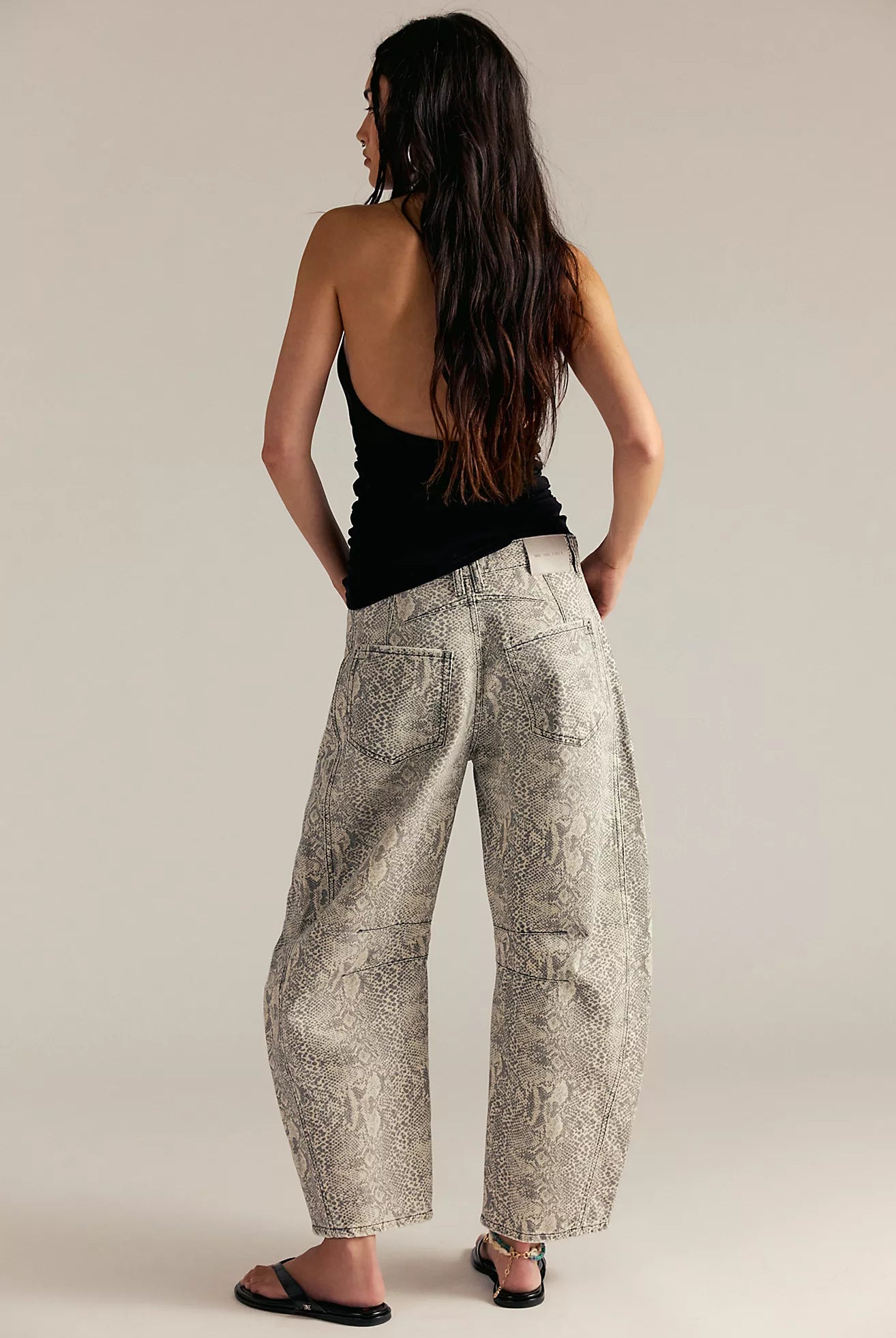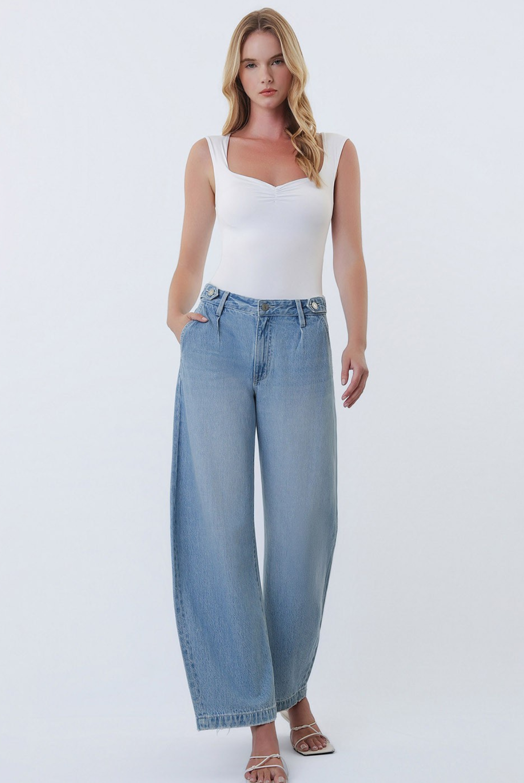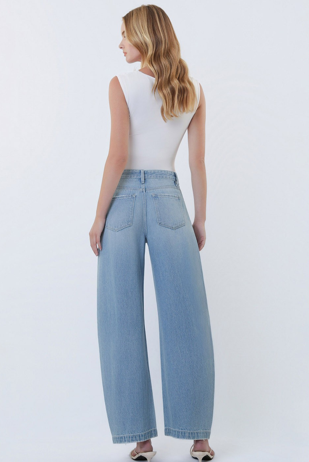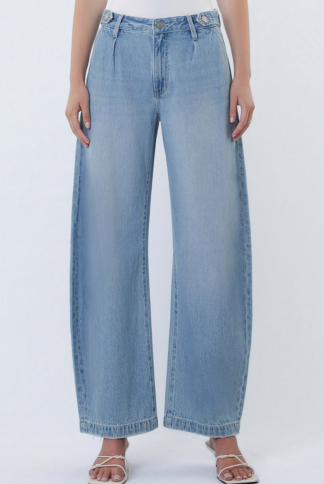 These jeans showcase a trendy barrel silhouette that’s designed to turn heads while providing a flattering fit. Made from high-quality non-stretch denim, they offer a structured feel that enhances your shape and gives you all-day comfort. The distinctive twist detail adds a fun and unique touch, making these jeans a standout choice for any outfit.