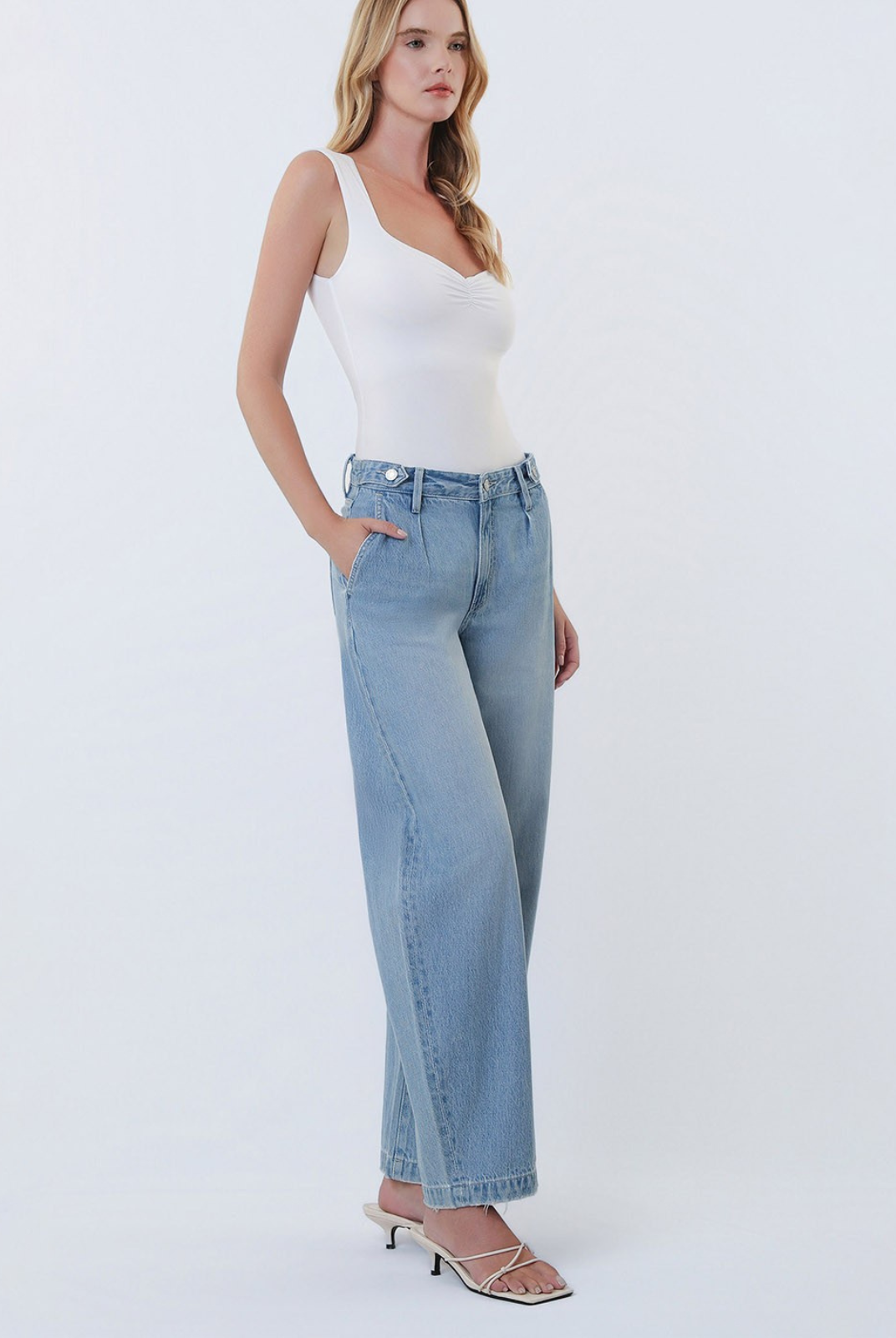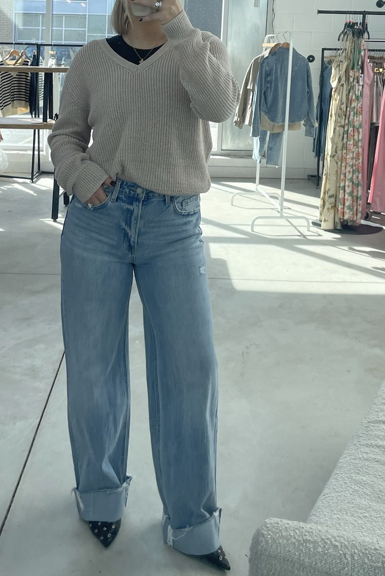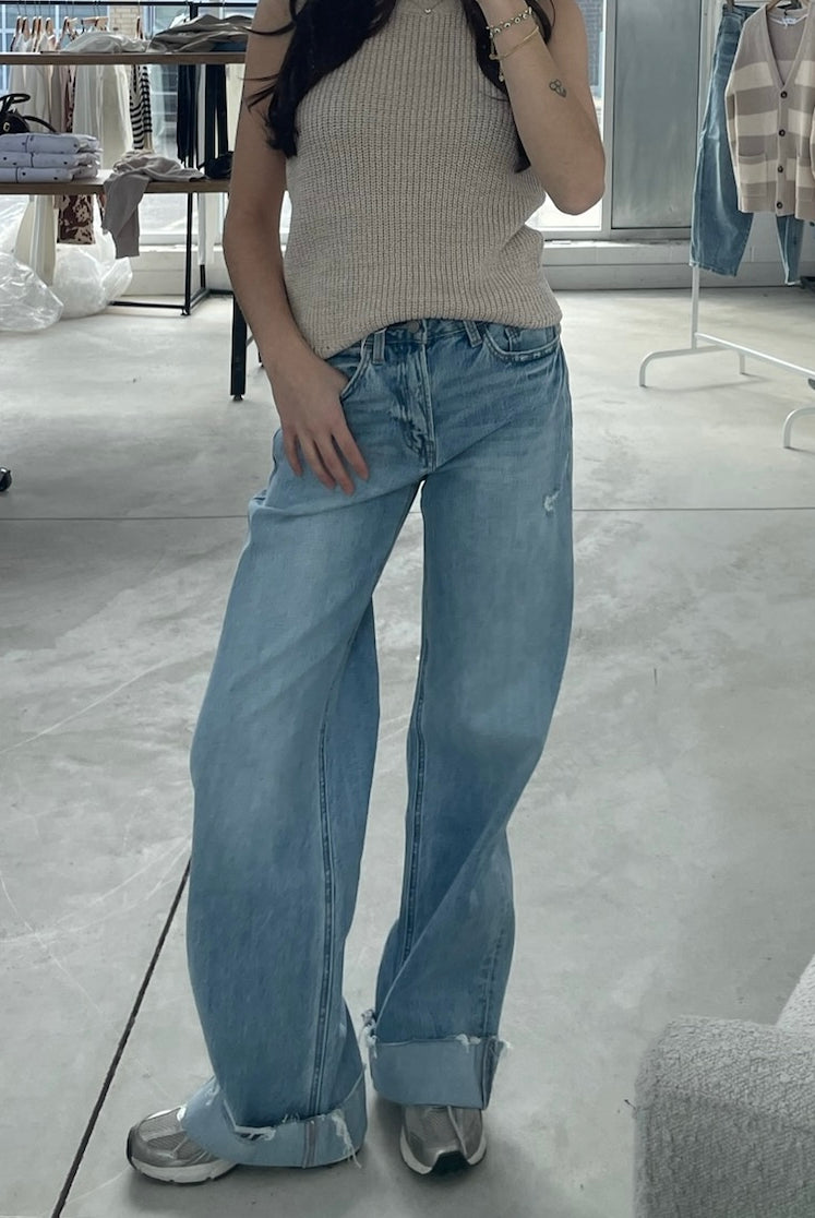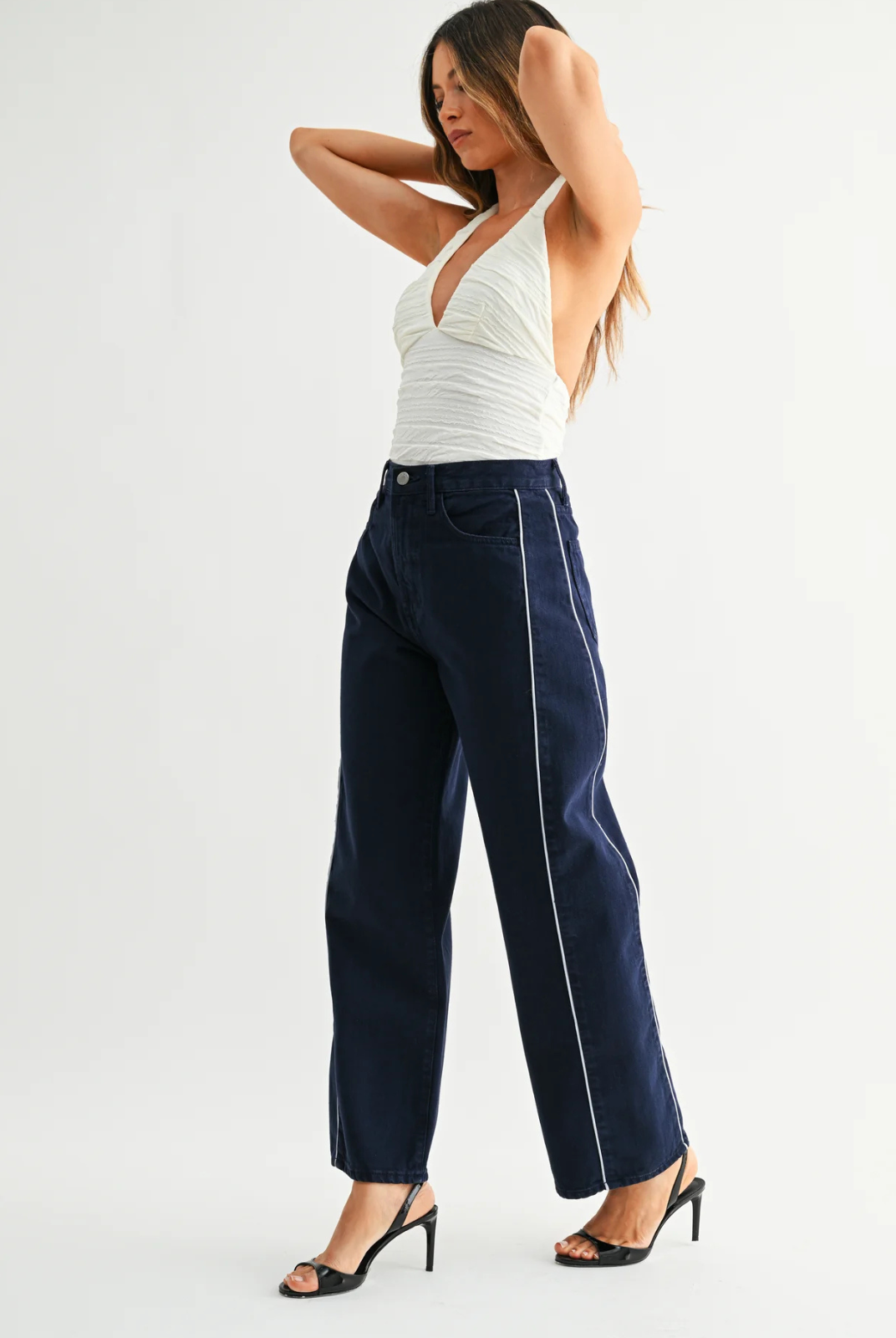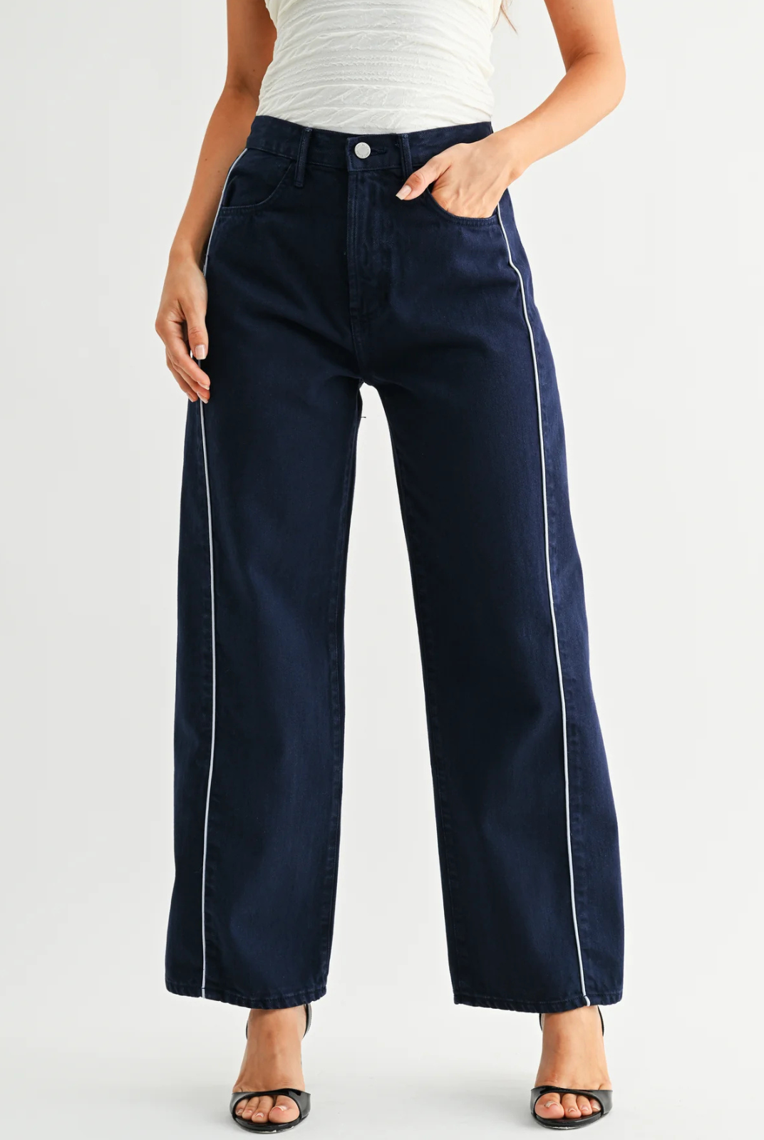 These jeans showcase a trendy barrel silhouette that’s designed to turn heads while providing a flattering fit. Made from high-quality non-stretch denim, they offer a structured feel that enhances your shape and gives you all-day comfort. The distinctive twist detail adds a fun and unique touch, making these jeans a standout choice for any outfit.