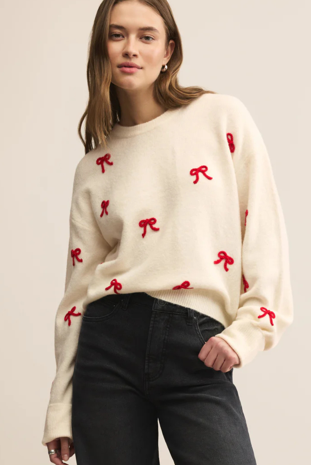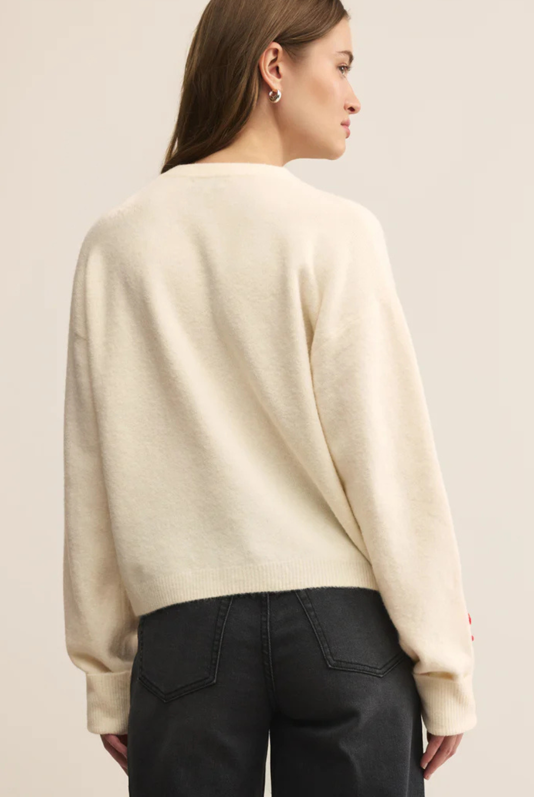 Super fun knit zip-up with a dancing couple on the front & back! A fun must have for this season!