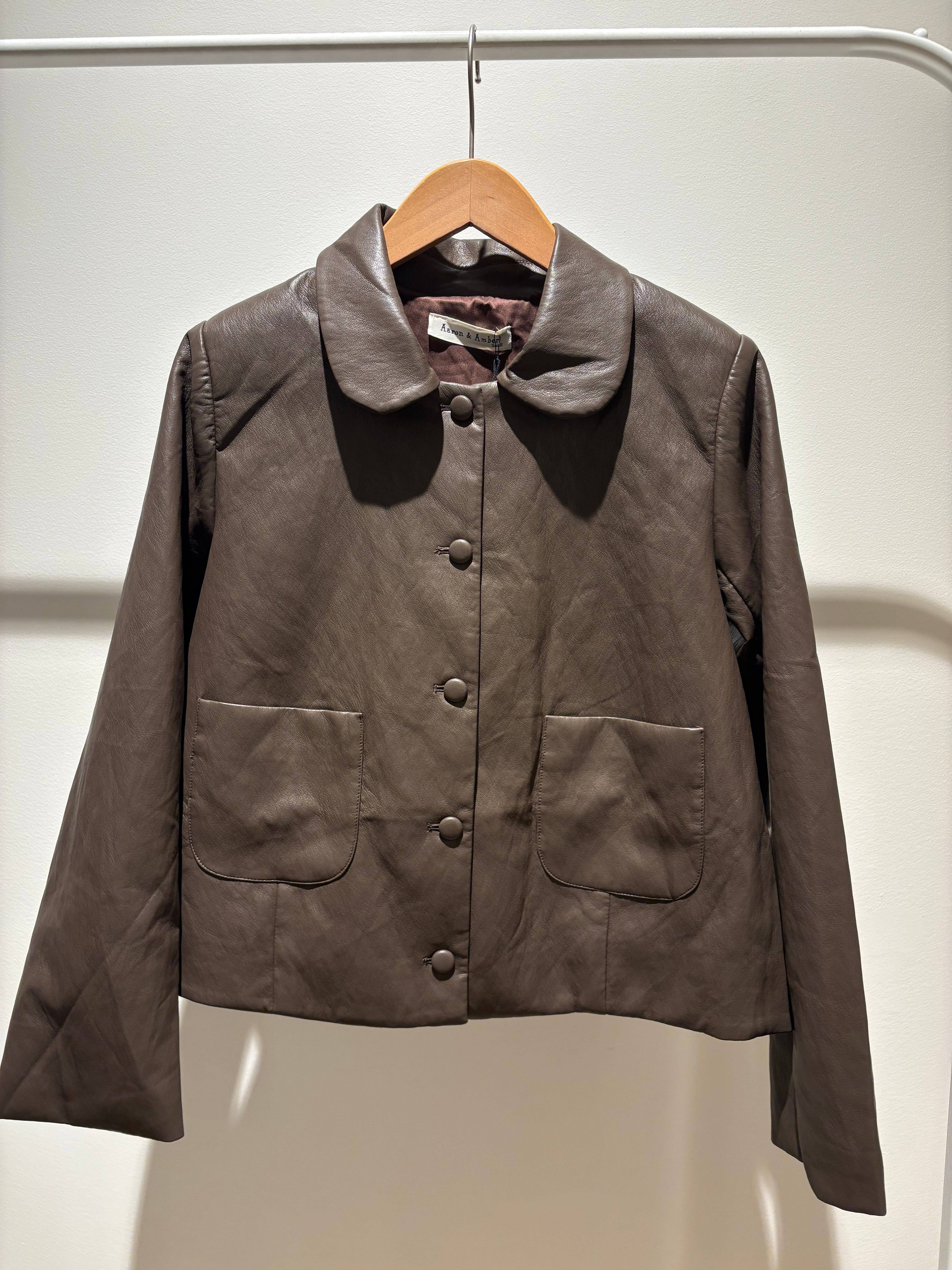 Jules Peterpan Collar Leather Jacket - Dark Brown
