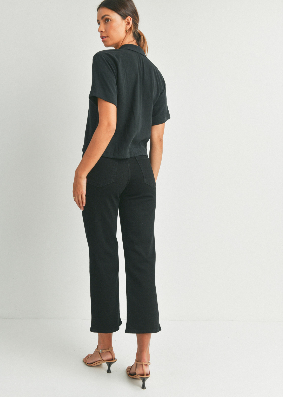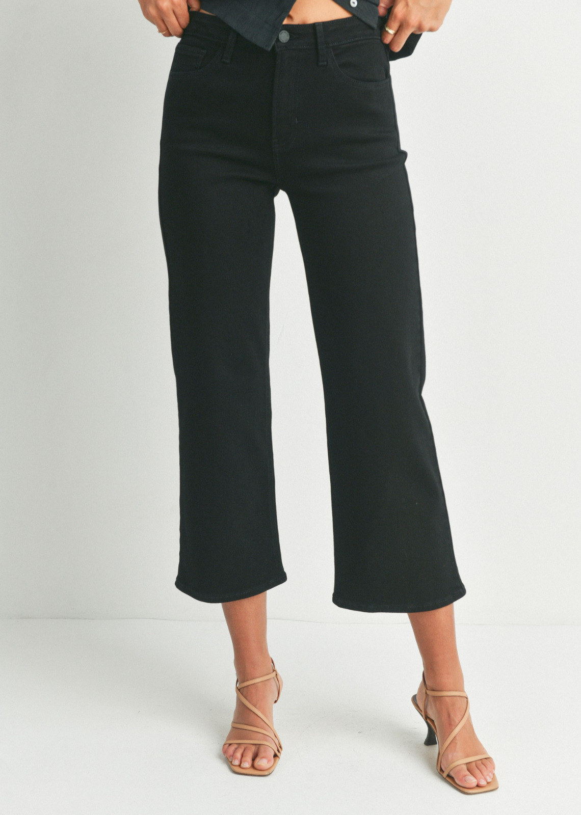 These high-waisted cropped jeans are slim through the waist and open up past the thigh. Plus these jeans are made with our ultra-soft and stretchy fabric, which is flattering on everyone