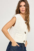 Casual chunky knit sweater vest top, button down knit sweater vest, vintage 90s sleeveless chunky knit tops for women, fall winter sweater coat.