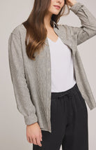 The Arabella button down shirt is made of a linen blend fabric in a yarn-dyed stripe. Features include a patch pocket and side slits. Wear it buttoned up or worn open as a light layering piece.
