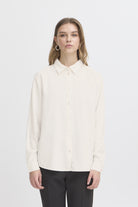 Ivory linen-blend button-up blouse is a perfect staple for any wardrobe.