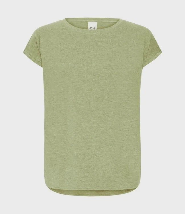 The ICHI IHREBELLY SS women's T-shirt in Iguana is a soft, relaxed-fit basic with a round neckline, short sleeves, and a rounded hem. Timeless, comfortable, and perfect for endless combinations — solo or under a blazer.
