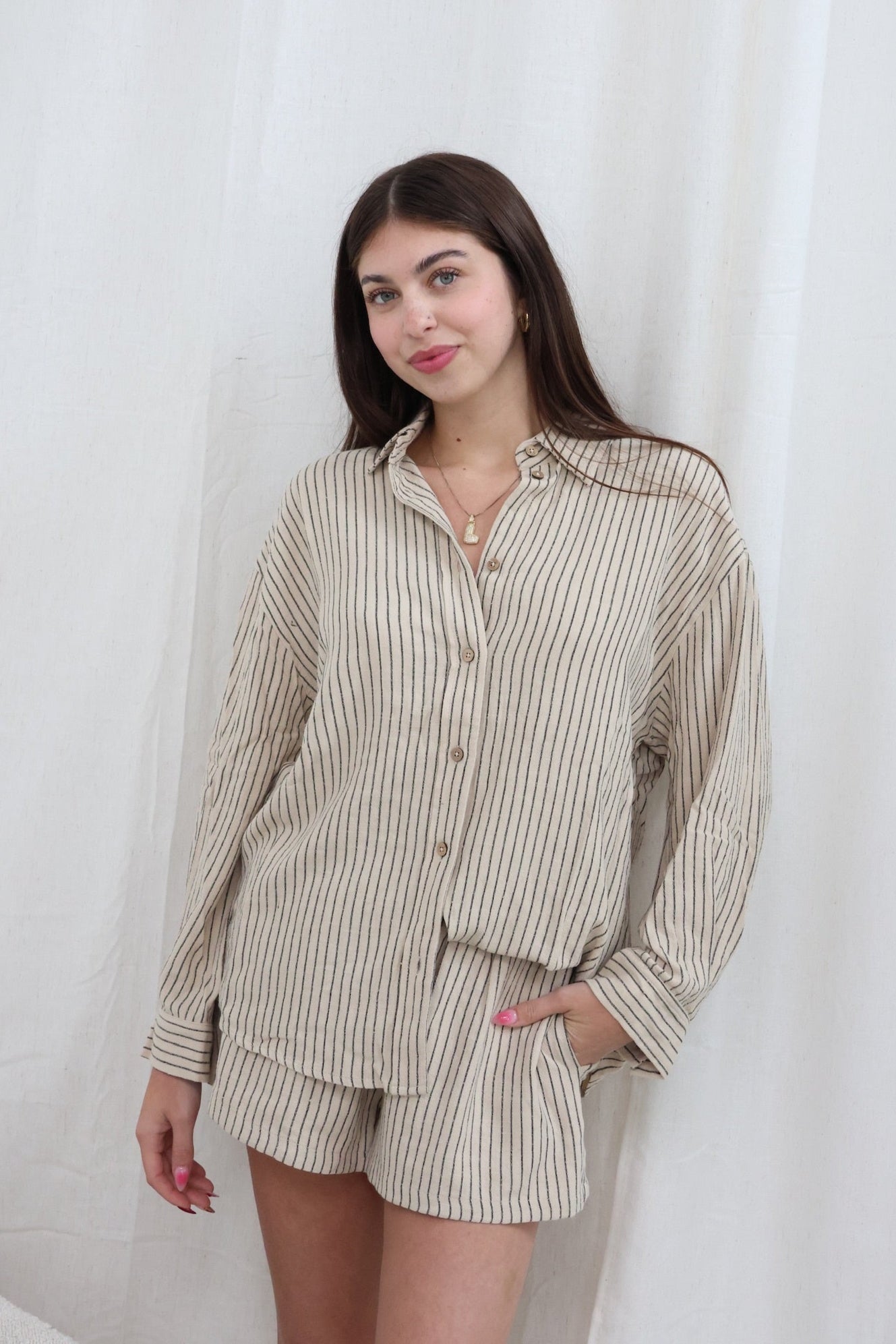 Miou Muse Oatmeal Striped Button-Down Shirt