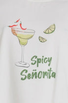 For the woman who can never have enough spicy margs! Our white relaxed fit graphic t-shirt features a spicy Margarita image with "Spicy Senorita."