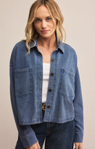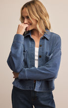 Z Supply All Day Cropped Knit Jacket Washed Indigo