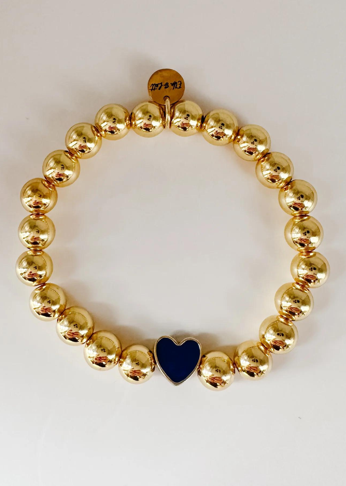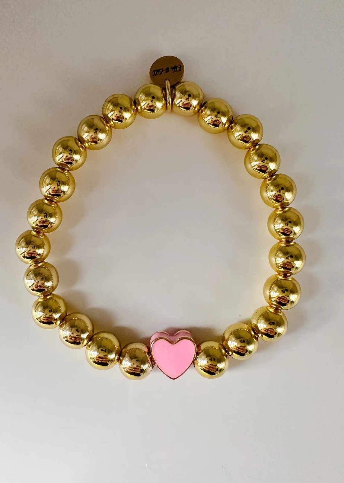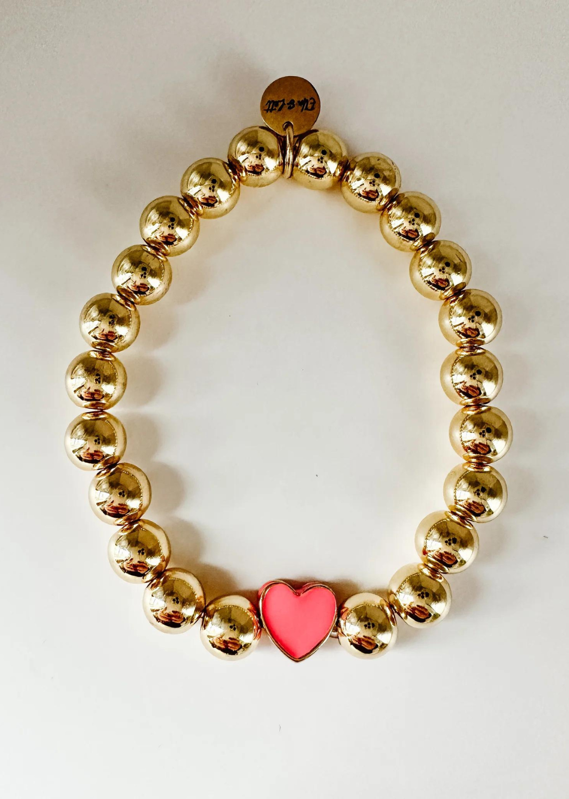 Materials: Gold plated heart charm with enamel, and gold plated round beads.