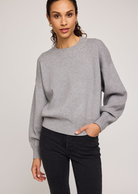 The Alfie sweater is made of a soft yarn in a smooth knit pattern. Features include a crew neckline with a V-stitch detail and a perfectly oversized fit.