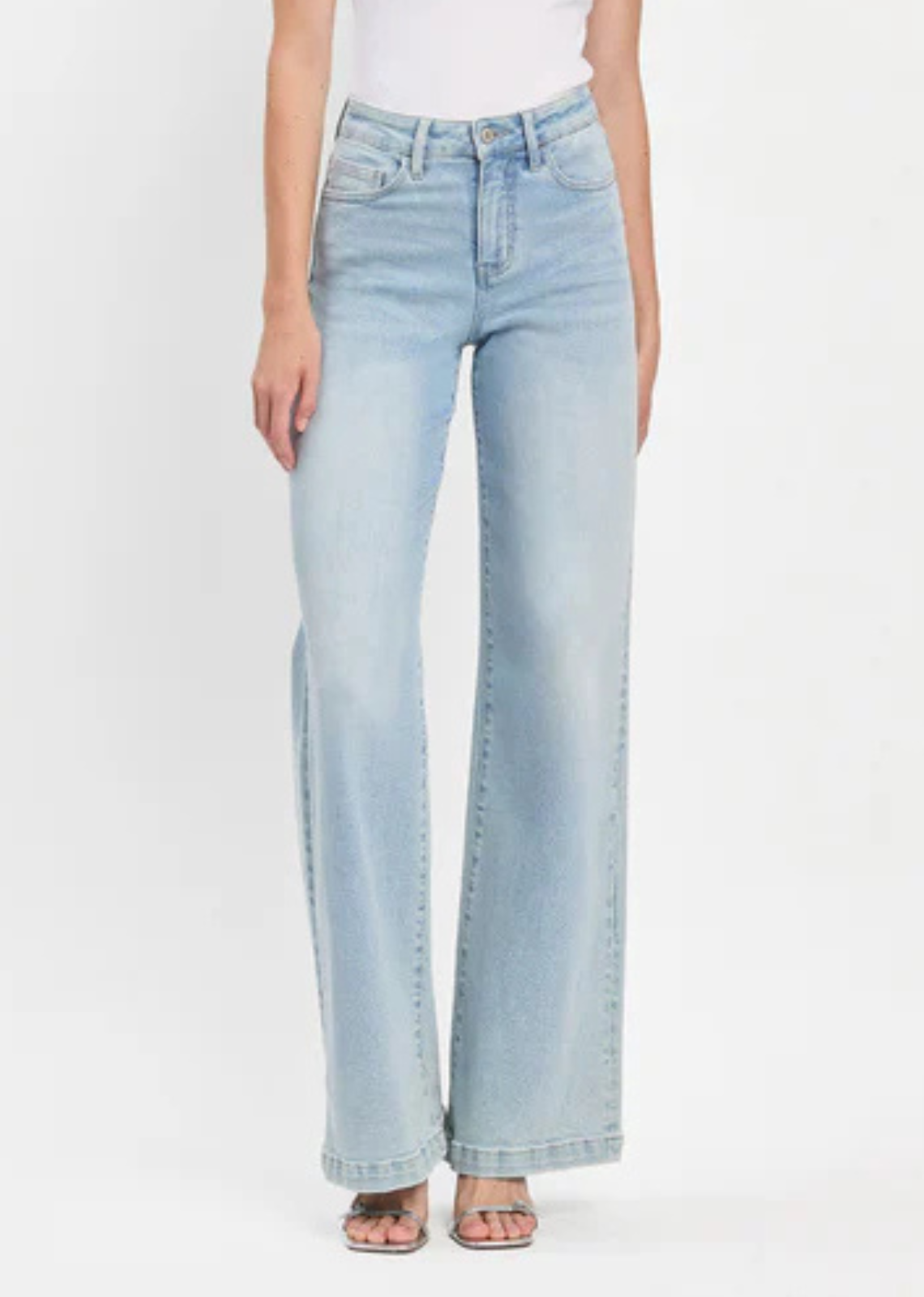 Maximize your confidence with Optimistic high rise jeans! Crafted from comfortable stretch denim, these full length wide leg jeans feature a figure-flattering high waist and a unique released hem for a playful touch.