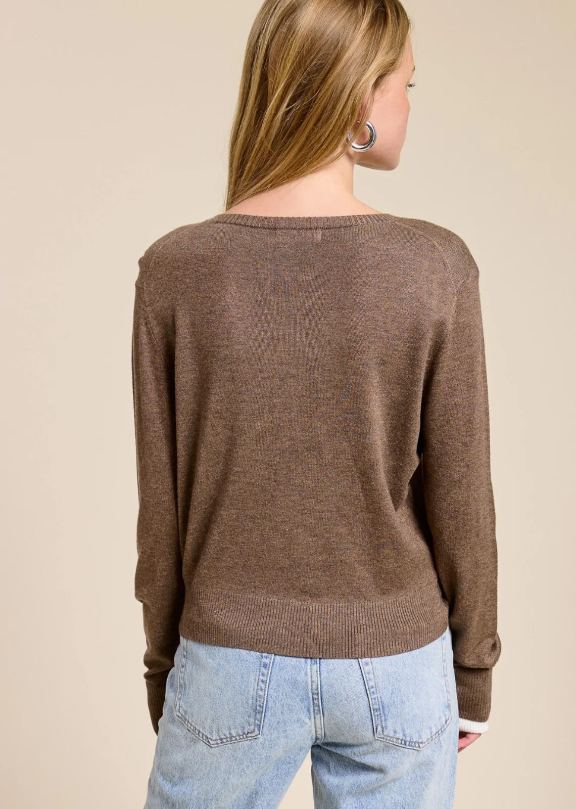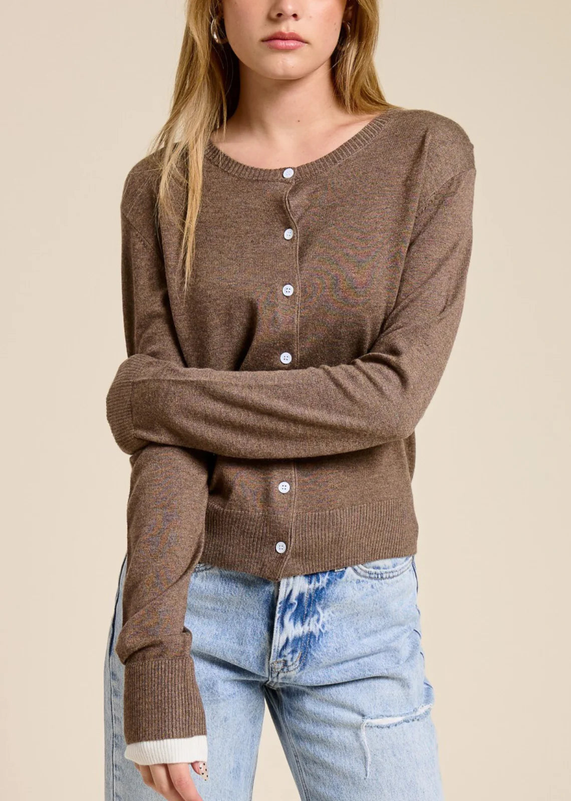Terri Contrast Sleeve Cardi - Mocha/Cream