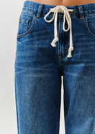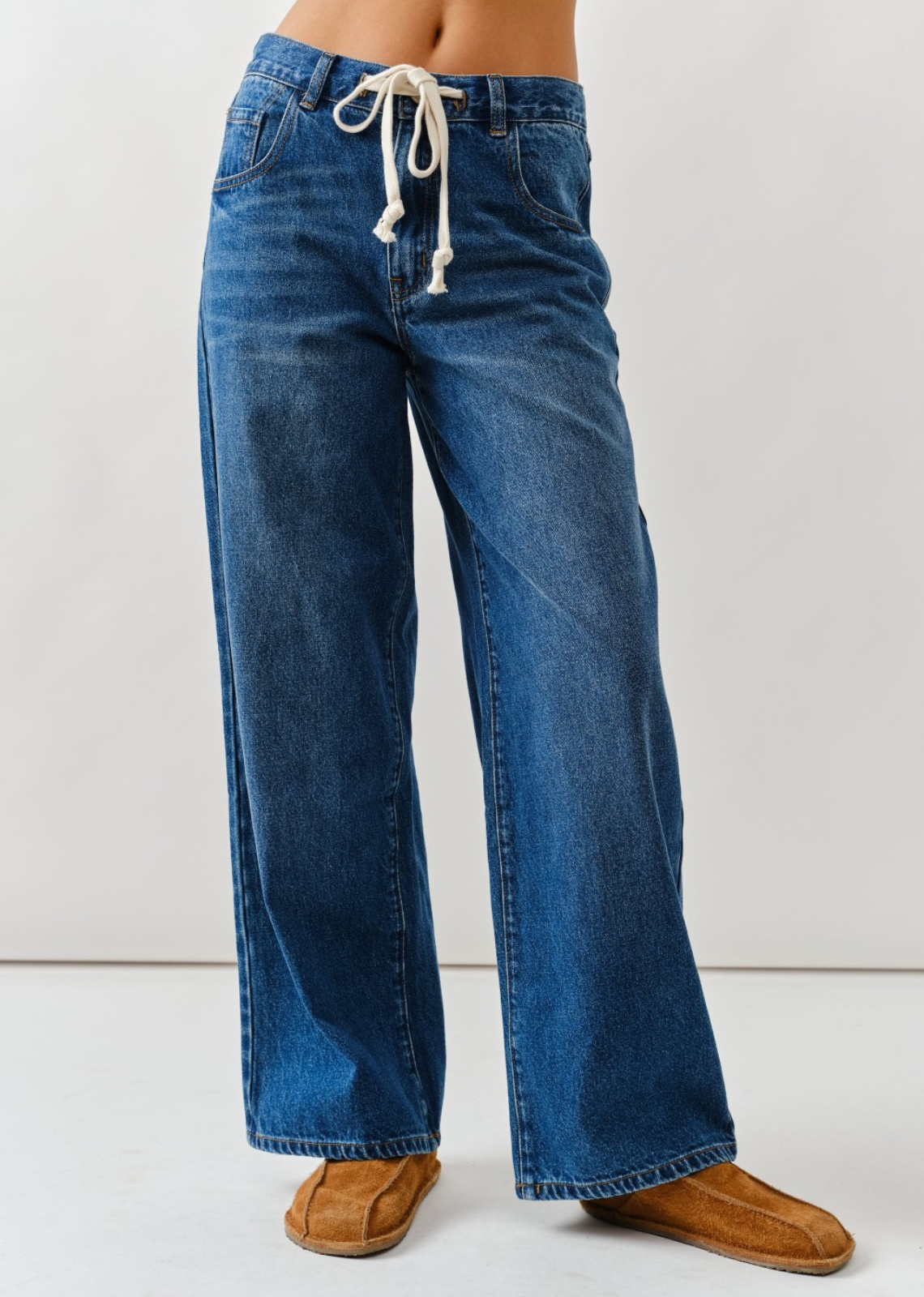 Effortless comfort meets laid-back style in these drawstring waist straight-leg jeans. Crafted from soft, medium-wash denim, they feature a relaxed fit with a bottom fly closure and an adjustable drawstring waist for a customizable fit. The wide, straight-leg silhouette offers easy movement and a casual Additional Information: 77% COTTON 11% VISCOSE 12% POLYESTER |