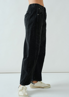 A soft neutral palette meets intricate floral embroidery in these barrel pants. Designed with a relaxed fit and gently curved leg shape, The tonal stitching adds a subtle texture while keeping the look effortlessly wearable.