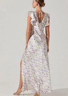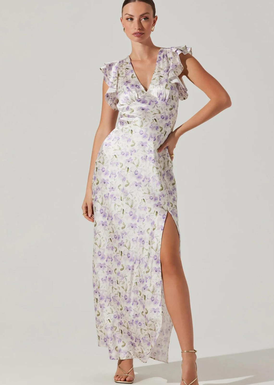 - Floral print, flutter sleeves, V-neckline