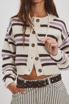 The outfitting options are endless with this staple cardi, featured in a cropped style and textured cotton knit with a fun striped print for the perfect patterned touch.