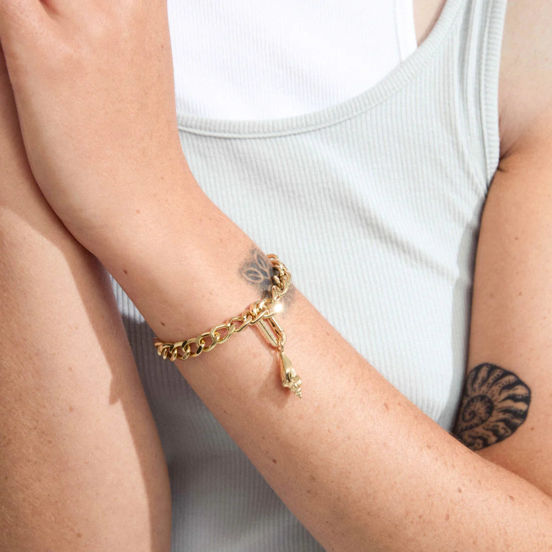 Make your own statement with Pilgrim's gold-plated or silver-plated conch pendant. Perfect for adding a unique, personal touch to your style. Style it with a chunky necklace for a quick beachy vibe or add it to your bag or belt for a splash of seaside sparkle. Mix and match symbols and letters to create a personalised style that’s uniquely yours. The pendant is made from 99% recycled material - fashion with the environment in mind.