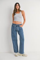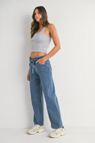 Designed with a relaxed, wide-leg silhouette and an adjustable drawstring waist, these jeans offer the perfect balance of ease and shape. Versatile and chic, they are a must-have for a laid-back yet polished look.