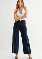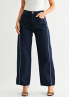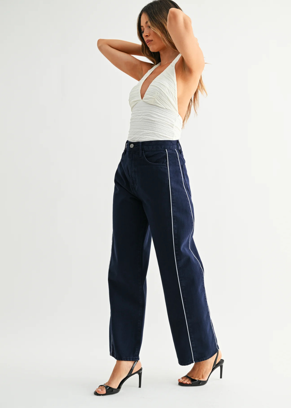 These jeans showcase a trendy barrel silhouette that’s designed to turn heads while providing a flattering fit. Made from high-quality non-stretch denim, they offer a structured feel that enhances your shape and gives you all-day comfort. The distinctive twist detail adds a fun and unique touch, making these jeans a standout choice for any outfit.