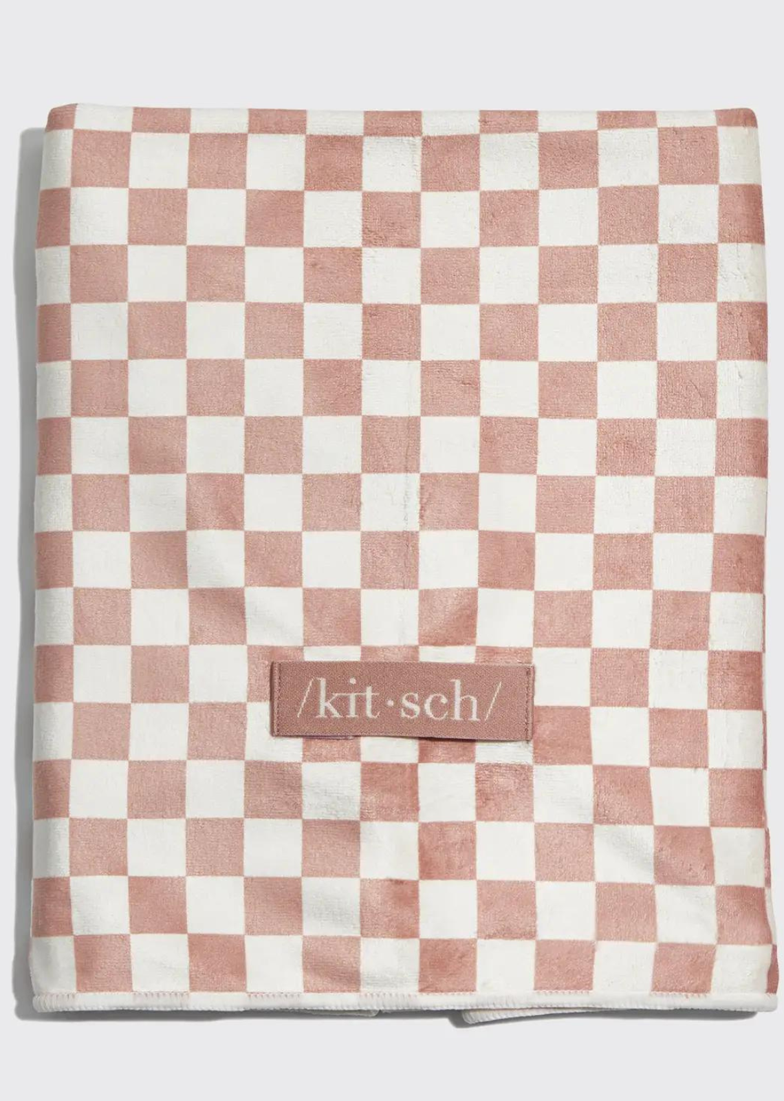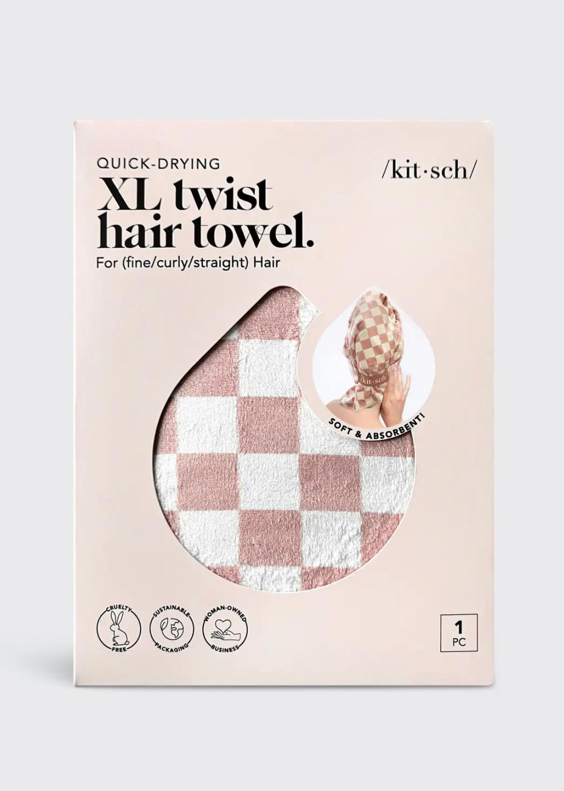 Kitsch Extra Large Quick-Dry Hair Towel Wrap- Terracotta Checker