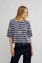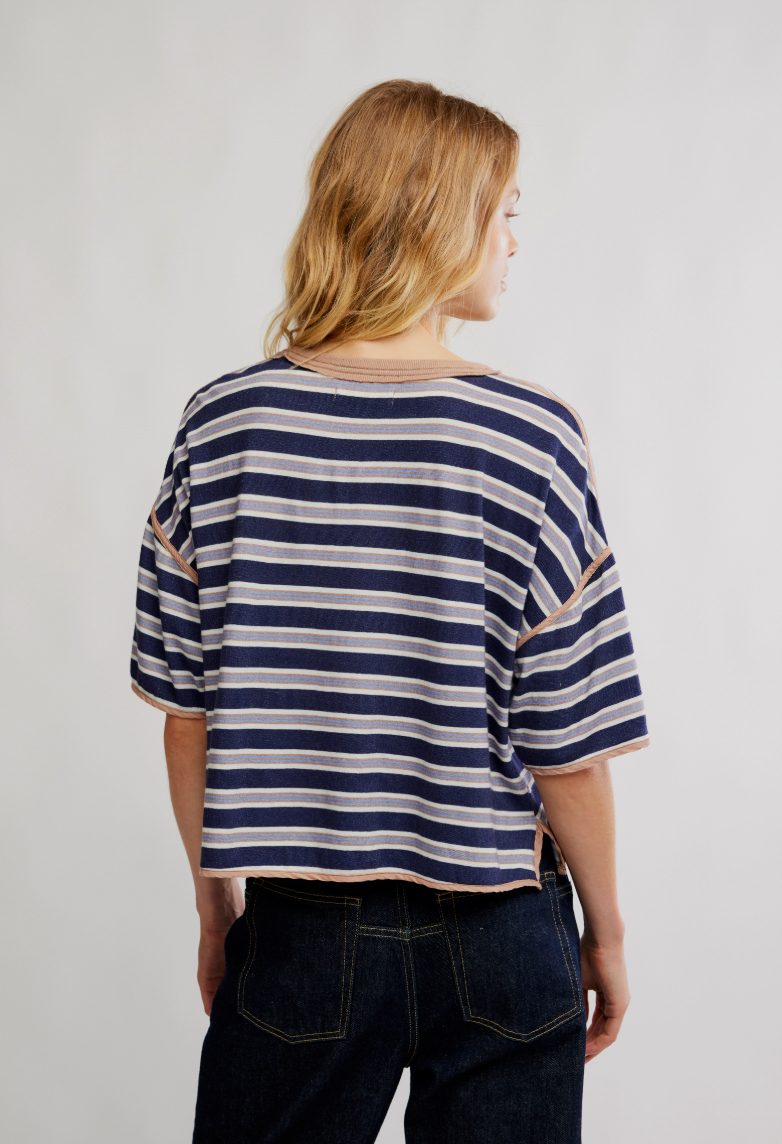 Sporty, retro, comfy–we’re bringing all of our favorite vibes into one tee with this staple option from We The Free, featured in a cropped, boxy fit with a fun striped print and extra wide short sleeves.
