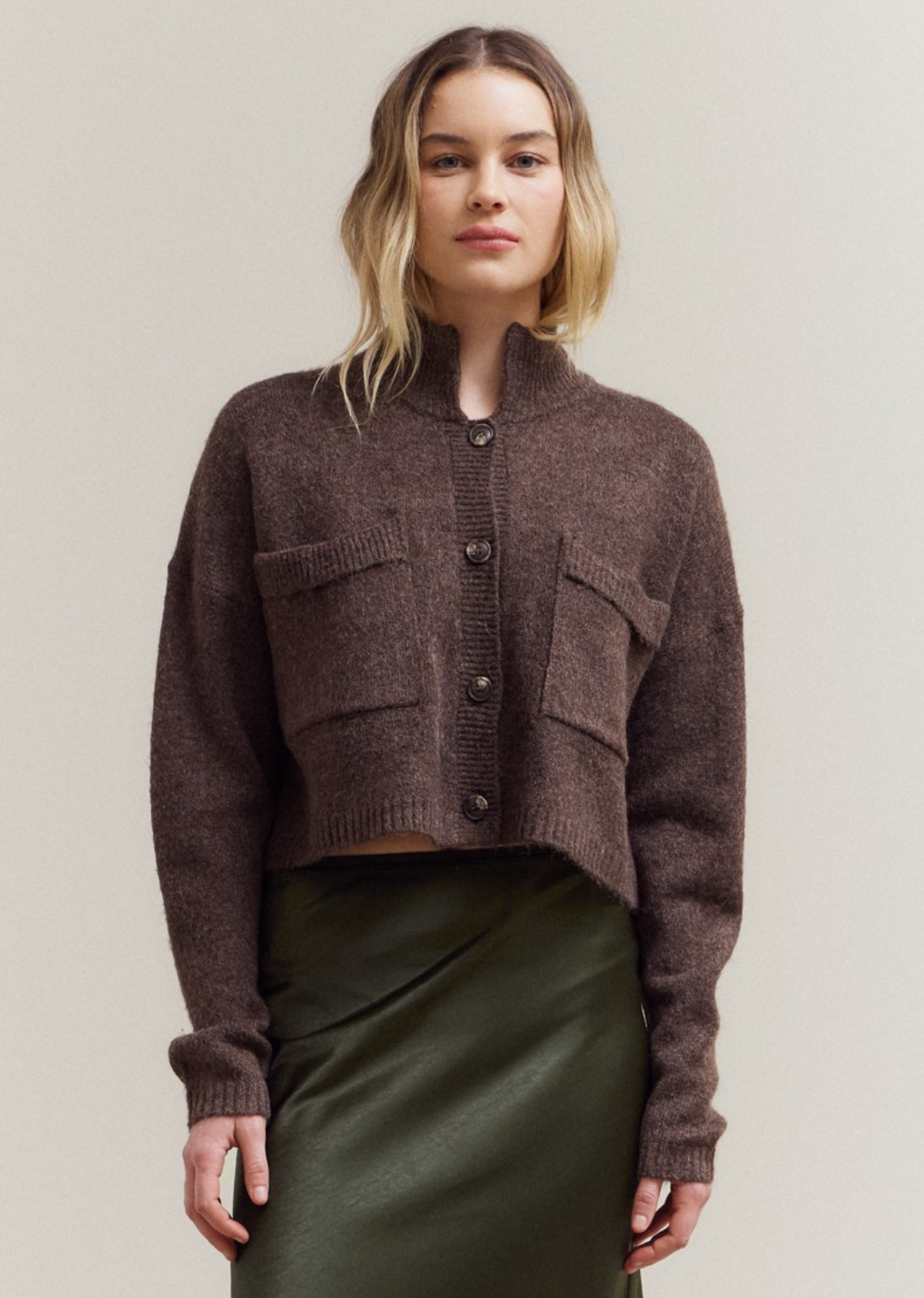 The Hillary High Neck Cardigan offers a sleek, elevated take on a cold-weather staple. Knitted from a soft, mid-weight blend for warmth and flexibility, it features a structured high neckline, full button front, and ribbed detailing throughout. The tailored silhouette delivers a refined, modern look that transitions easily from casual to polished settings.