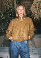 Laura Bubble Vegan Leather Jacket - Olive Brown