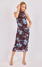 This stylish bodycon dress features a flattering sleeveless fitted silhouette and ruching detail on the sides.  Its striking abstract floral pattern creates a dynamic visual appeal. True to size. Size up if between sizes. Also, comes in a top!
