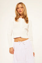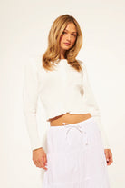 The Kyle is a chic, slightly cropped white cardigan designed with long sleeves and a fitted rib hemline that hits perfectly along the ribcage.