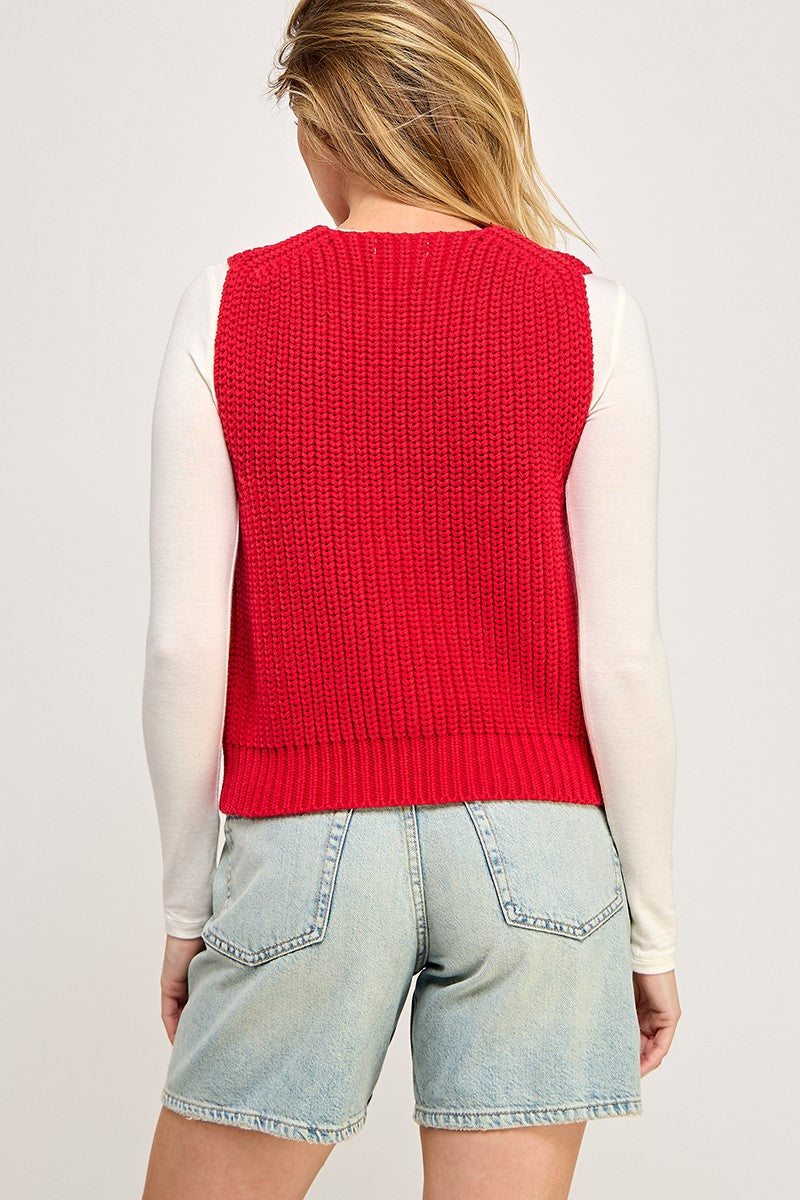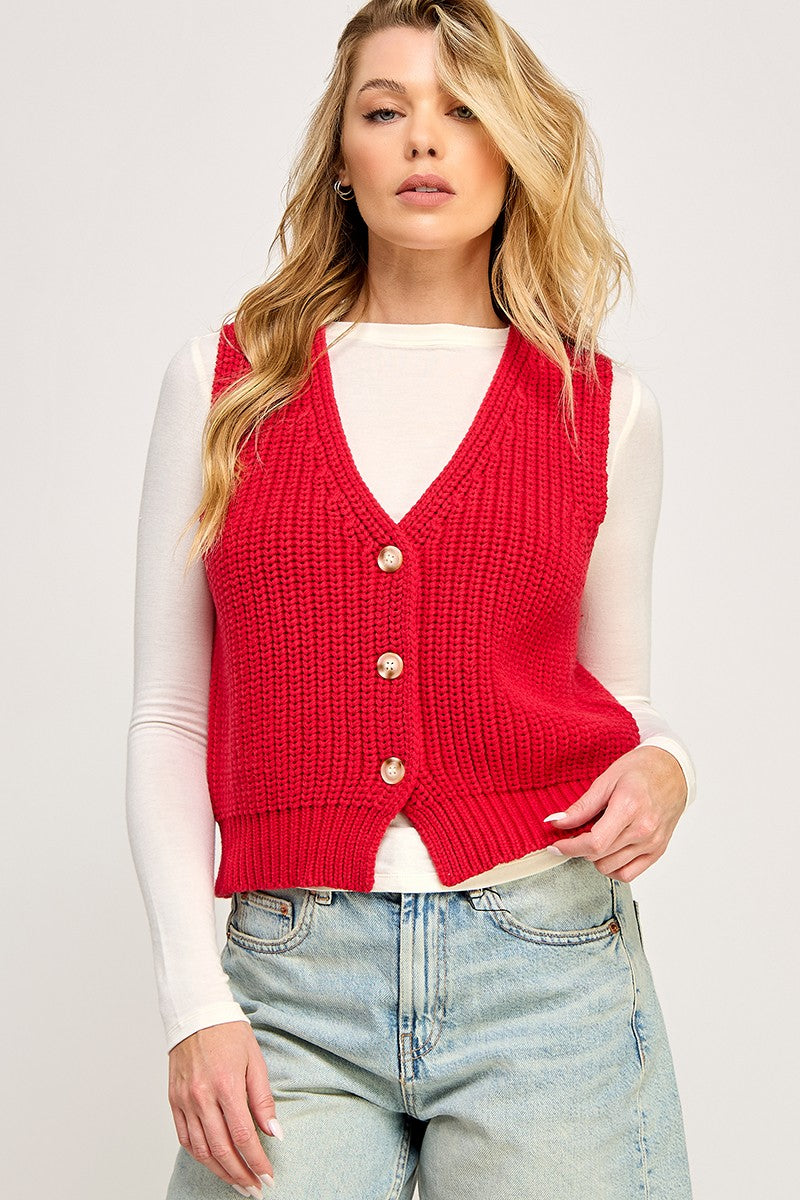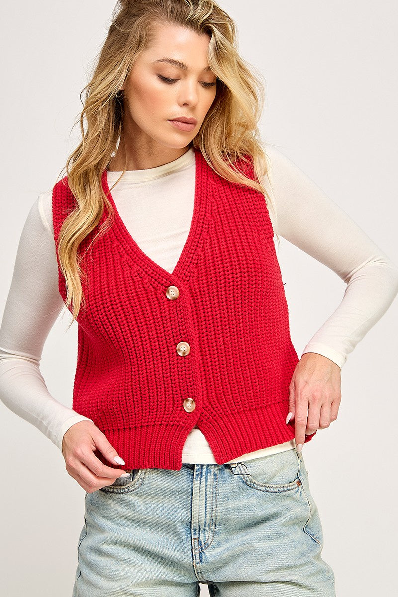Chunky knit cardigan vest, selected fabric, high quality made, skin-friendly, breathable and comfortable.Soft and lightweight cropped knit sweater vest.