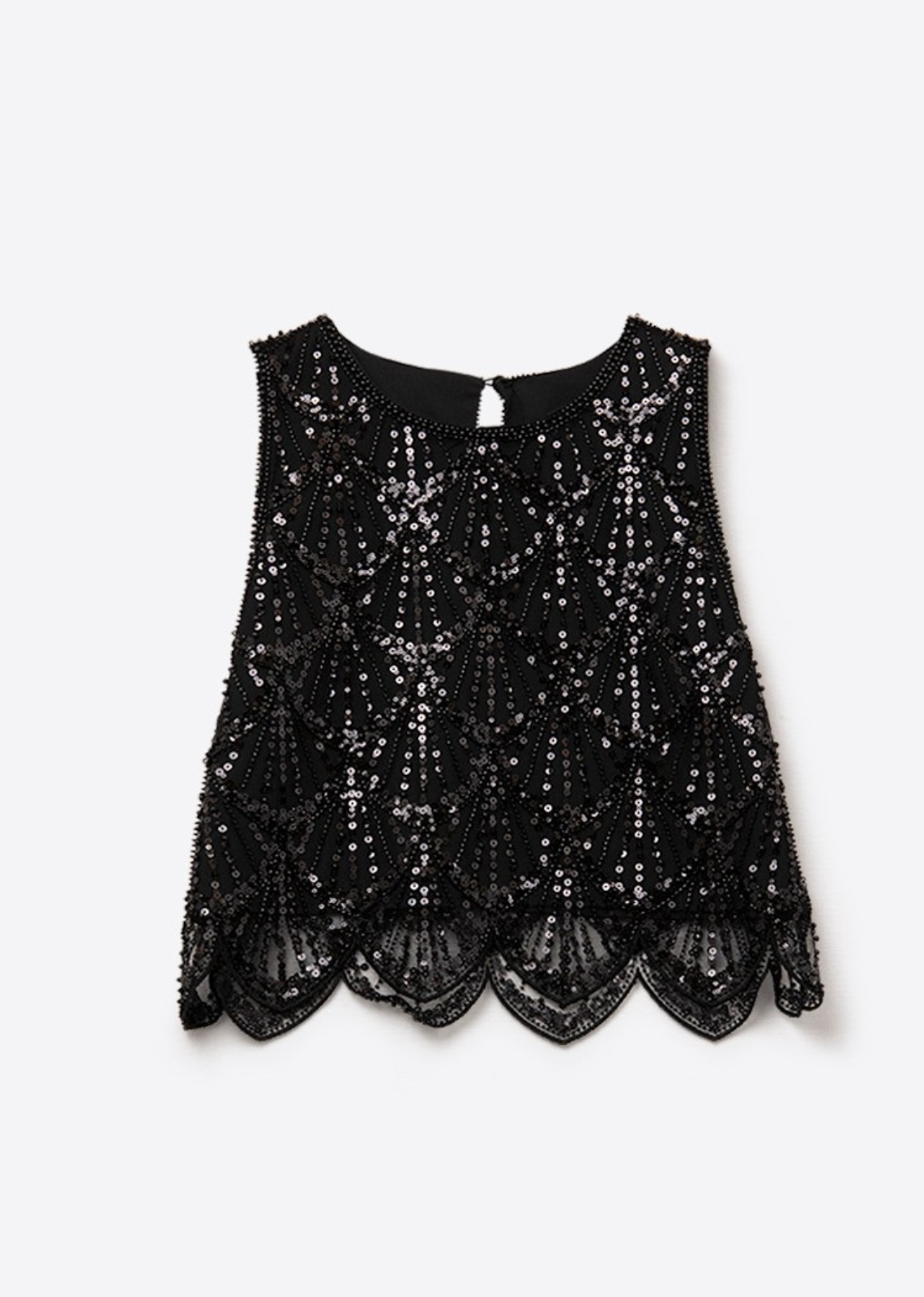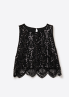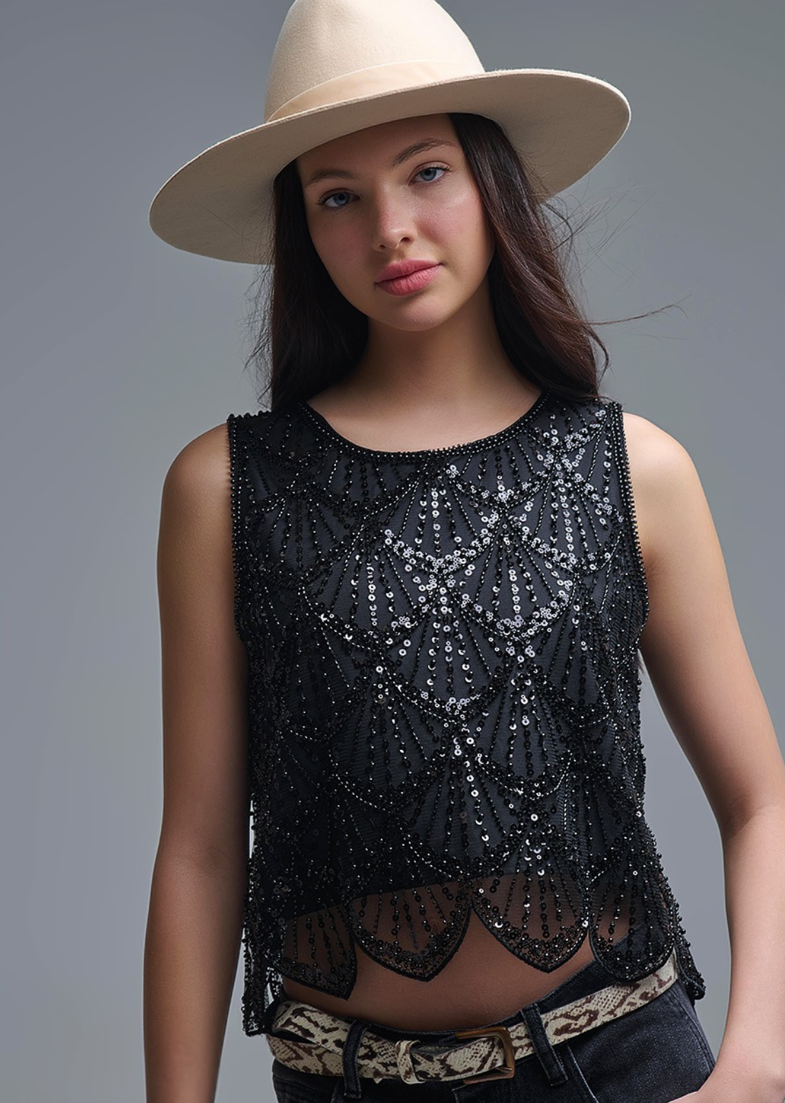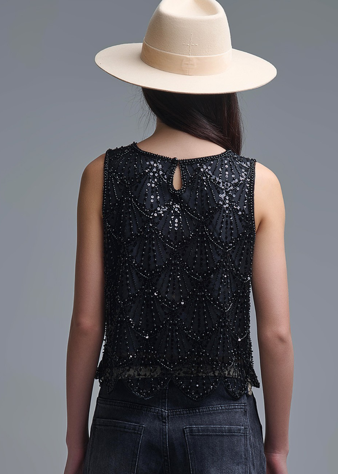 Elevate your wardrobe with this stunning cream sequin top! Featuring a sleeveless cropped design and a chic crew neckline it's perfect for any Holiday Parties this season. Pair with the matching skirt!