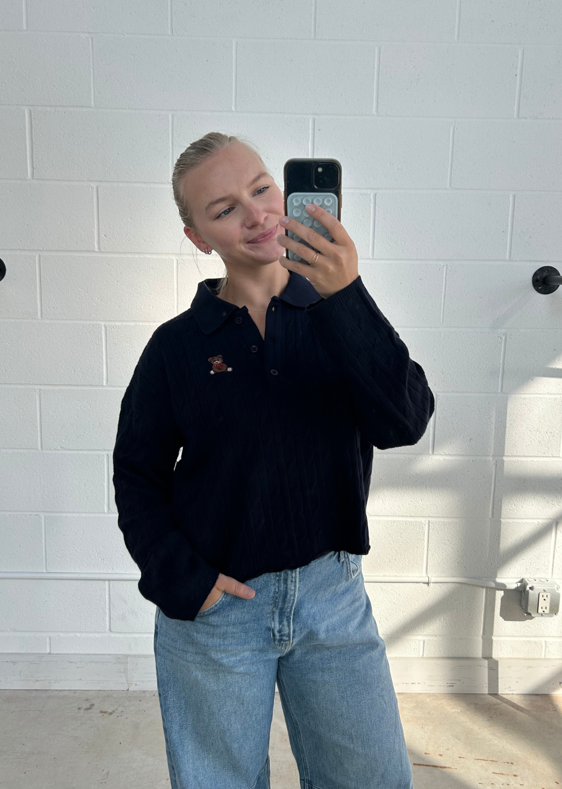 Angie Cozy Polo Knit - Navy