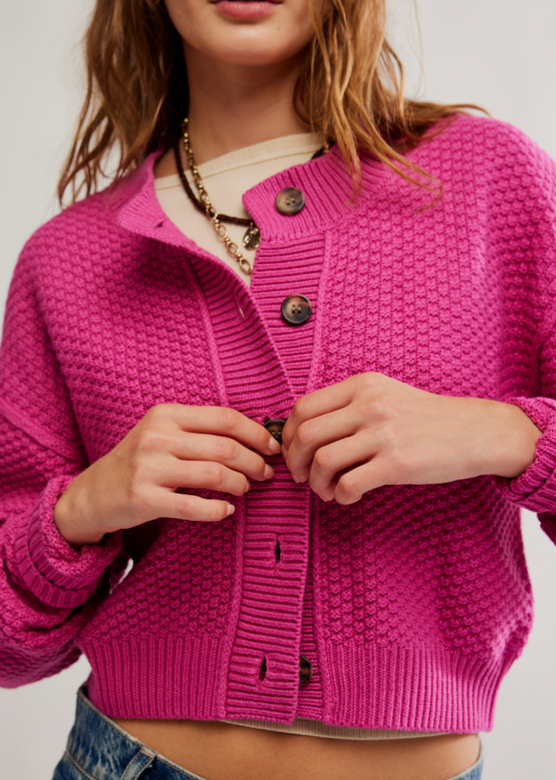 Designed to add dimension to any look, this cool and classic cardigan is featured in a staple button-front silhouette and textured knit fabrication for simple yet super special style from season to season.