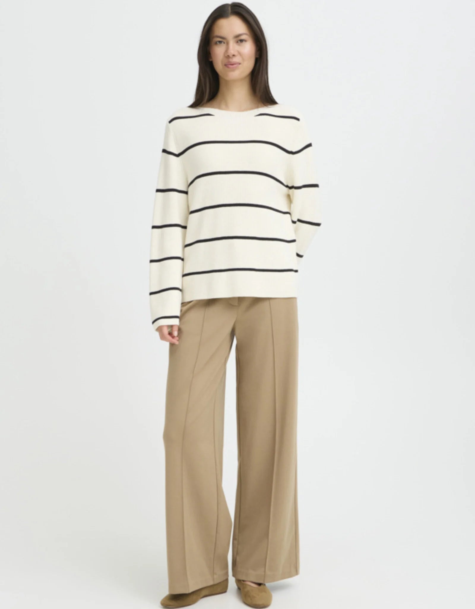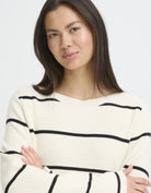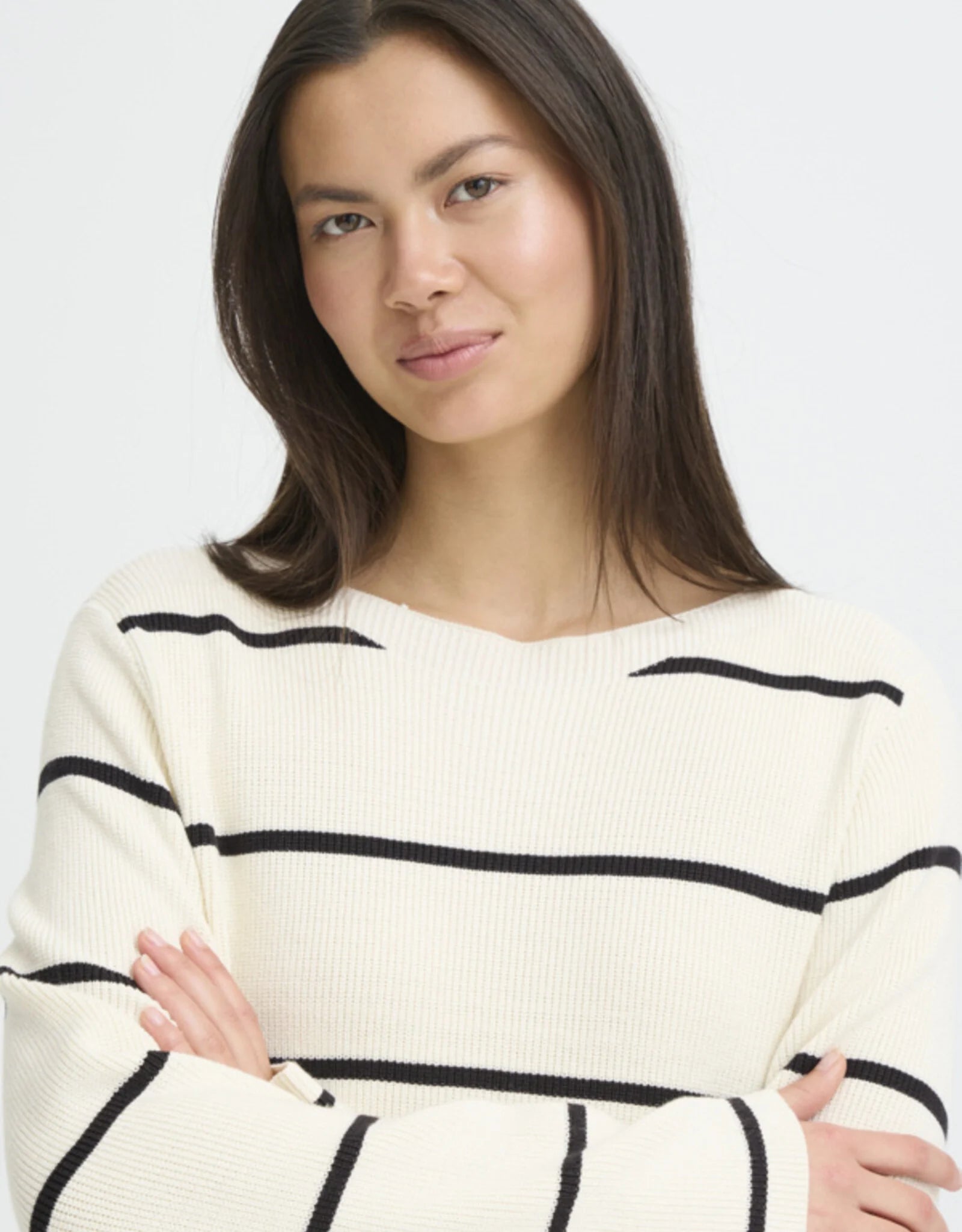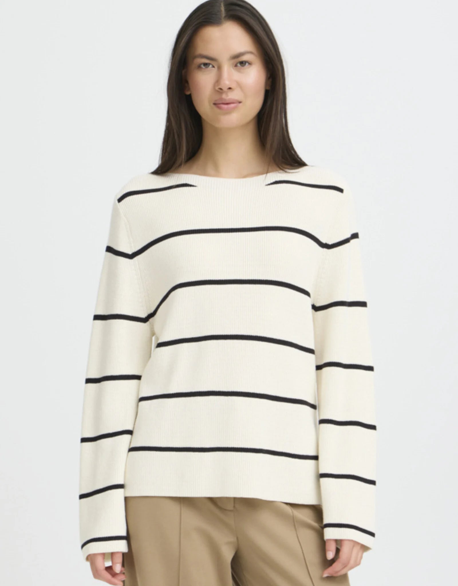 Striped sweater featuring a straight, regular fit and wide boat neckline. The textured knit design and long sleeves create a timelessly modern look.
