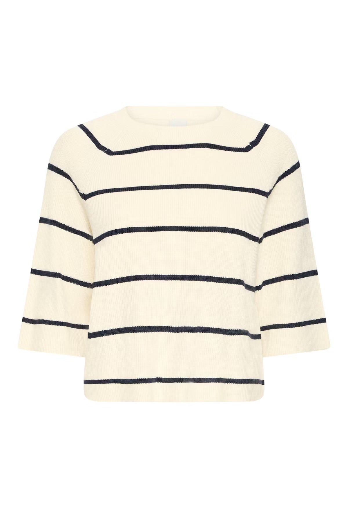 Ribbed knit sweater with a straight, slightly boxy fit, featuring a crew neckline and elbow-length raglan sleeves. Soft texture and clean silhouette add a modern touch to this everyday layer.