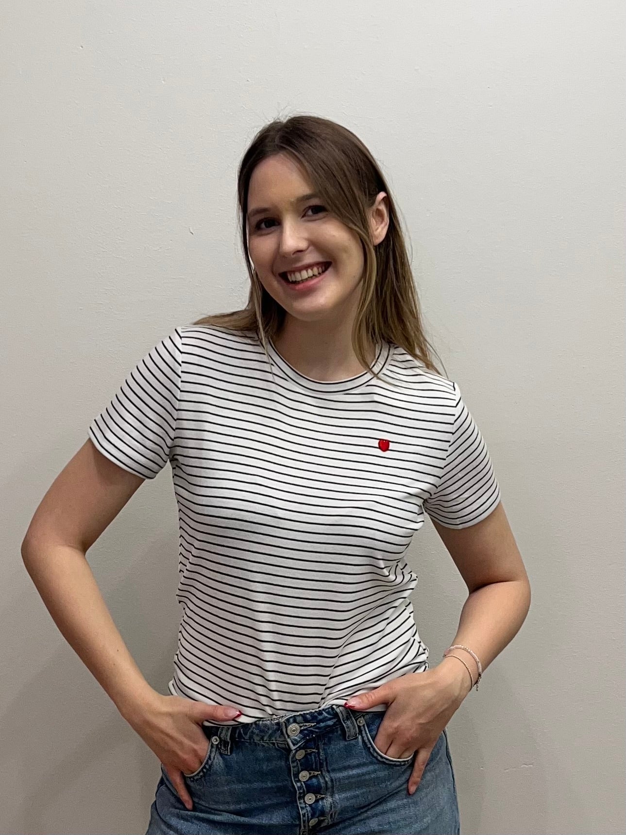 It's giving Parisian chic. This t-shirt is incredibly soft and has a stretchy, comfortable, relaxed style. Stay true to size for some room, or size down if you'd like a more fitted look. The styling options are endless!