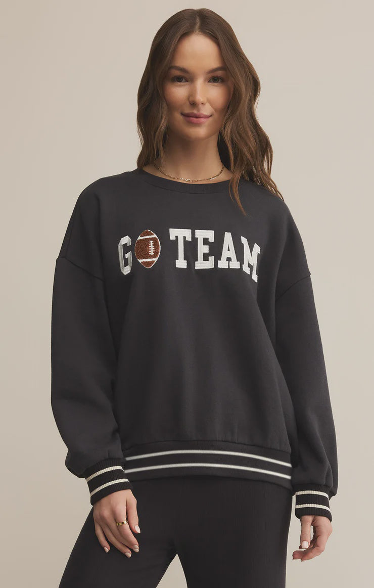 Go big on comfort with this oversized crewneck, crafted from soft fleece with a cozy, midweight feel. Featuring “Go Team” boucle and embroidered artwork, it’s the perfect layer to bring playful energy to your lineup.