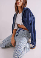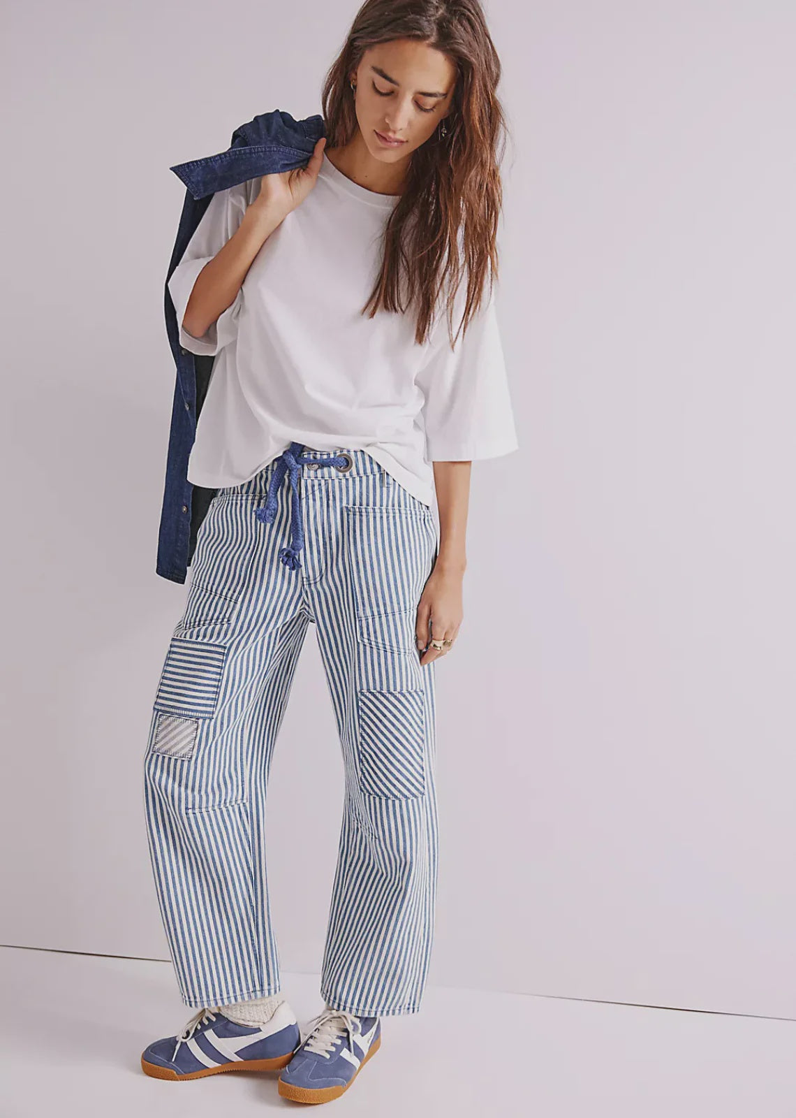 Cool and classic, this railroad-striped version of our Moxie Barrel Jeans are the perfect addition to any denim drawer.