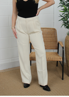 Made of a crepe suiting fabric, the Lottie is an effortless trouser pant silhouette designed for everyday wear. Features include side seam pockets, front pleats, and back waist darts for a perfectly tailored look.