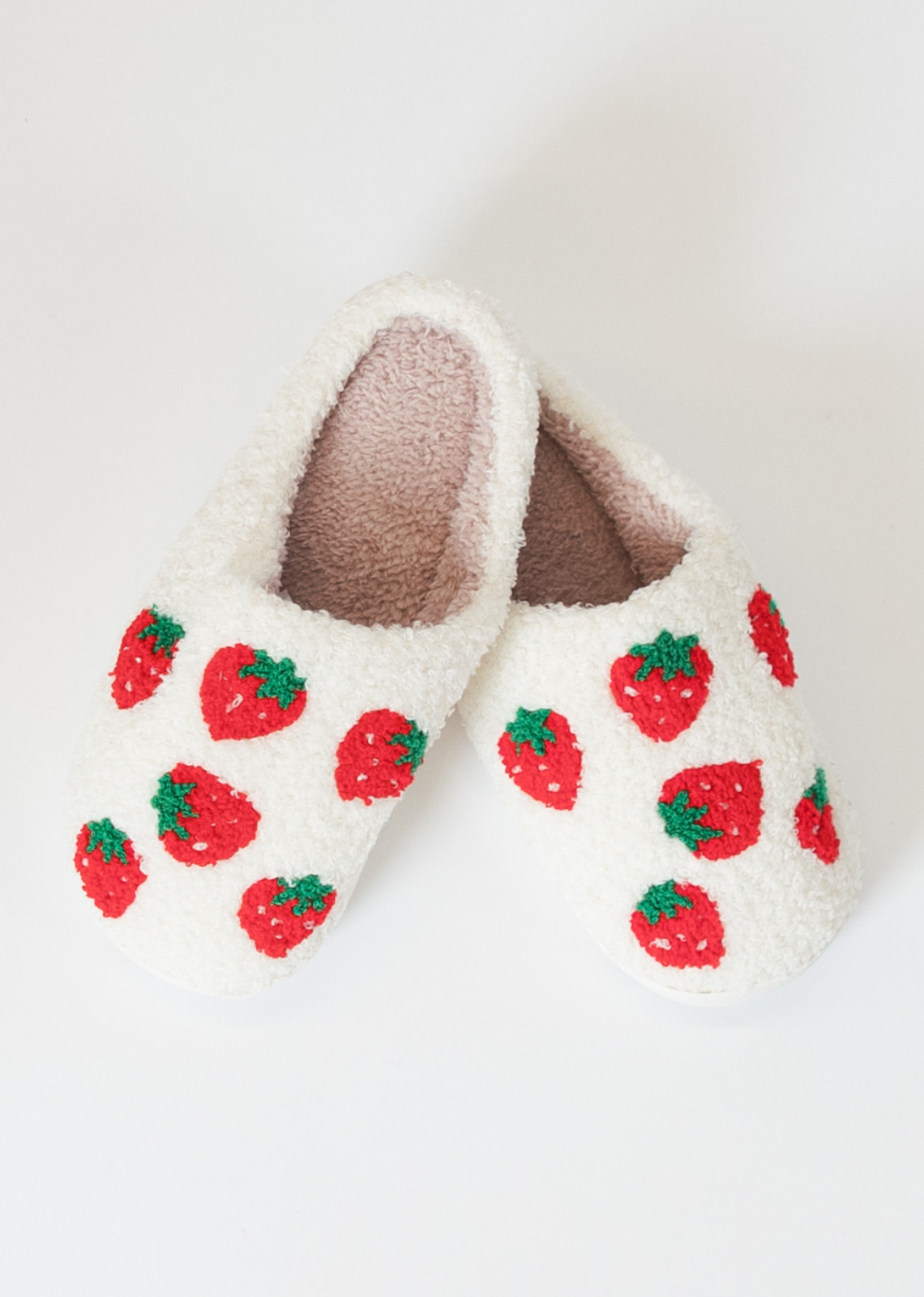Lyla & Luxe Printed Sherpa Slides - Strawberries