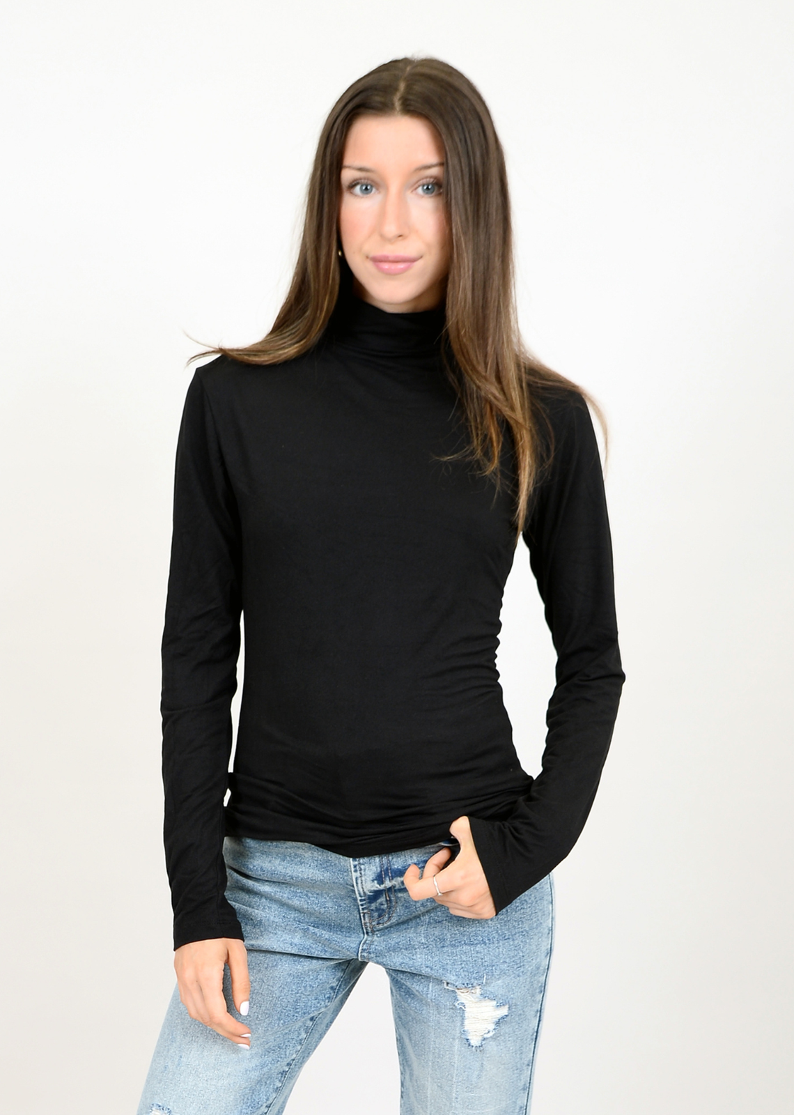 The soft Sarah T-Neck top is a wardrobe essential that will go perfectly with your outfits!