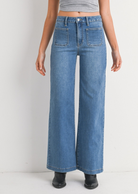 Featuring a flattering high-rise waist & a wide leg, these jeans create a sleek, elongated silhouette that's both comfortable and chic. The mini patch pockets add just the right amount of playful detail, giving them a unique, functional twist that sets them apart from the rest.